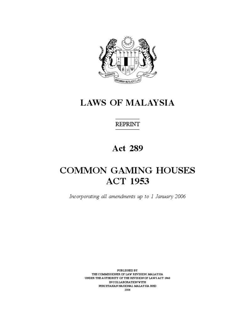 . An Act relating to the suppression of common gaming houses public gaming and public lotteries. Mereka disiasat di bawah Seksyen 71 Akta Rumah Judi Terbuka 1953 kerana bermain judi di tempat awam. Common Gaming Houses LAWS OF MALAYSIA Act 289 COMMON GAMING HOUSES ACT 1953.